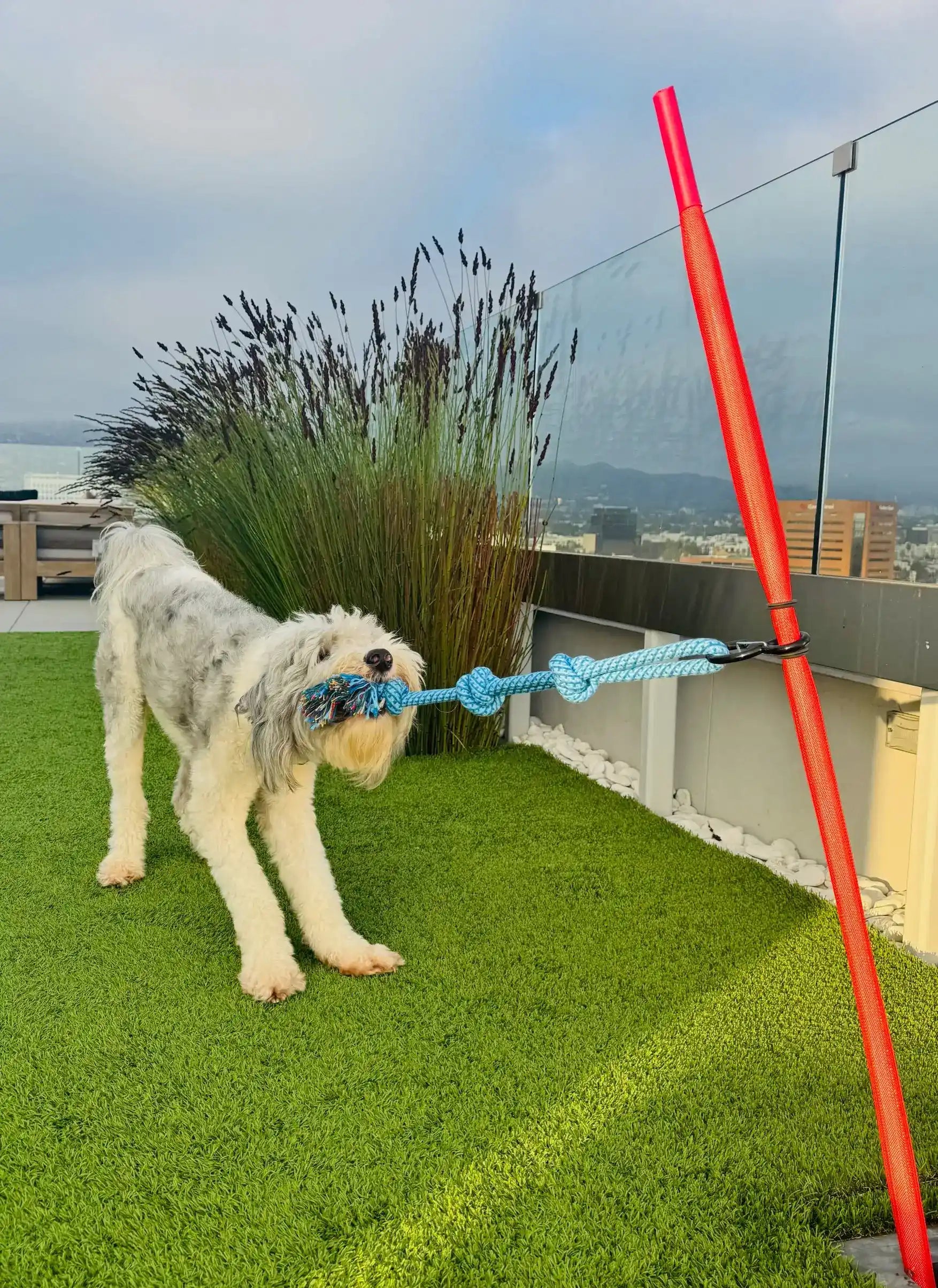 Every Valentino Pet Paw tug has a high-quality tug rope that has long durability as well as our rubber toys. Our pole has been tested with very large strong dogs to confirm its durability. Many dogs are looking for an outlet for their energy to create mental stimulation and give them a physical workout by having the ability to run around the pole effortlessly with our patent pending circular ring that keeps everything from getting wrapped around the pole.